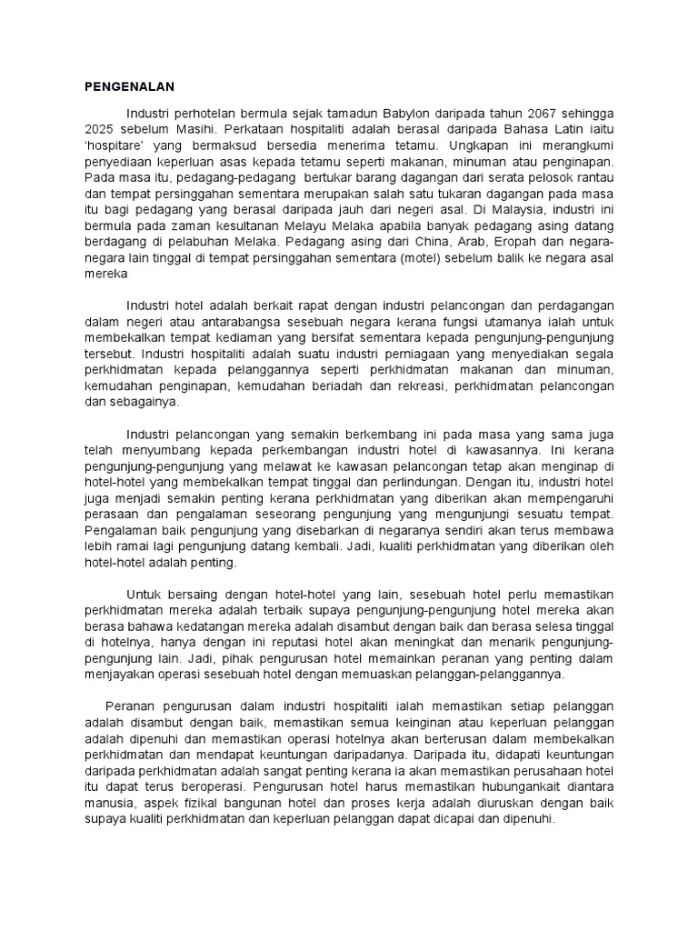 1 Bab 1 Pendahuluan 1 1 Pengenalan Industri Hotel Adalah