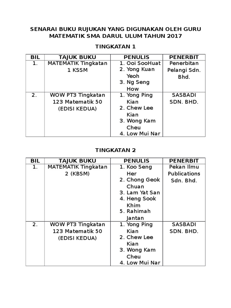 Senarai Buku Rujukan Yang Digunakan Oleh Guru Matematik 2017