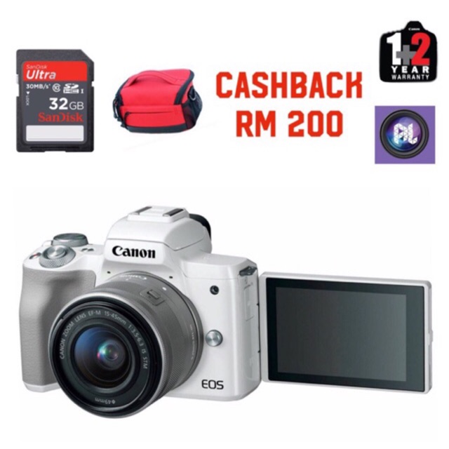 New Canon Eos M50 15 45mm Lens Free 32gb Card Camera Bag Price After Rm200 Cashback Shopee Malaysia