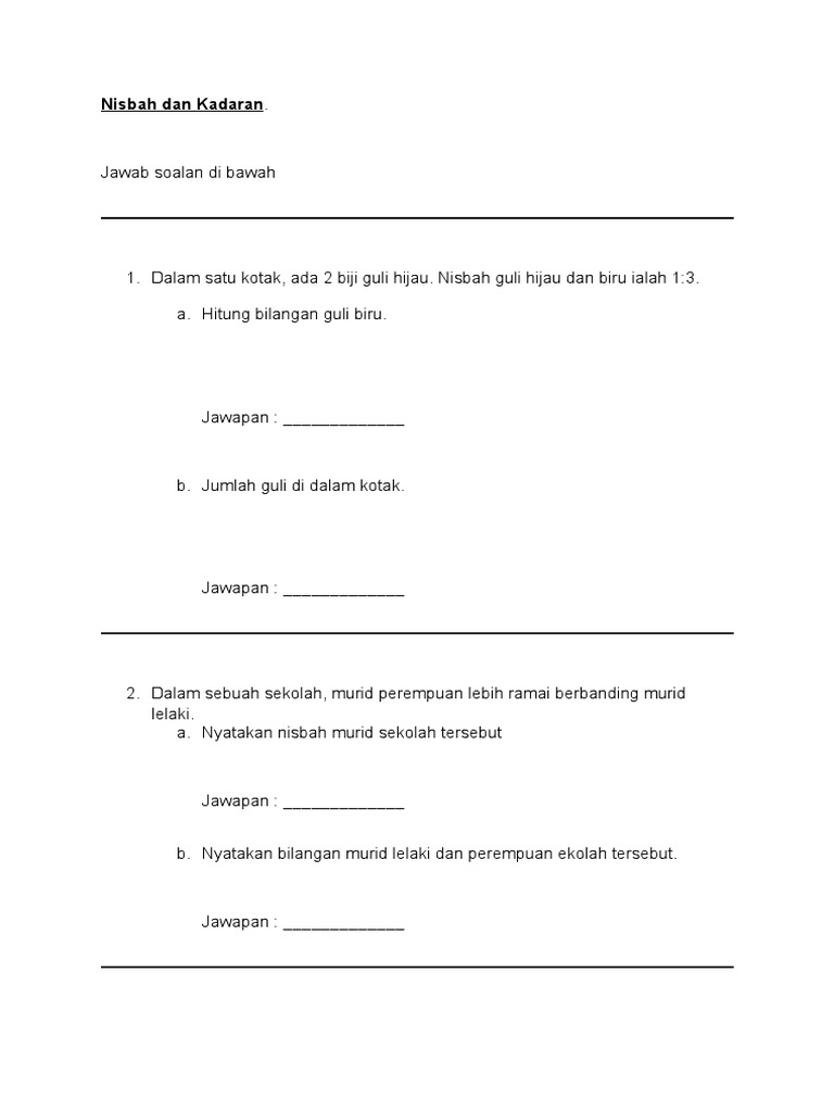 Contoh Soalan Nisbah Dan Jawapan Tahun 1