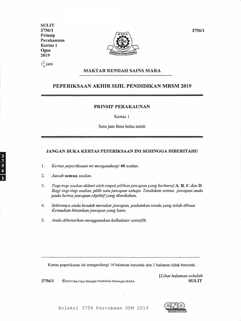 Prinsip Perakaunan K1 Percubaan Spm Mrsm 2019 Pdf
