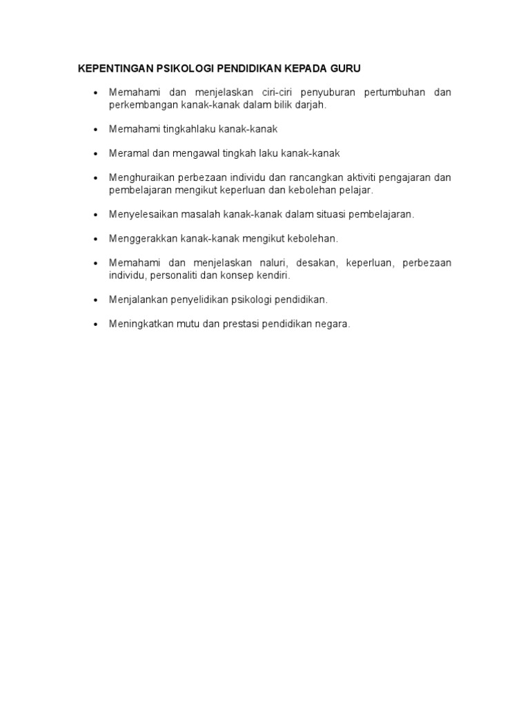Kepentingan Psikologi Pendidikan Kepada Guru