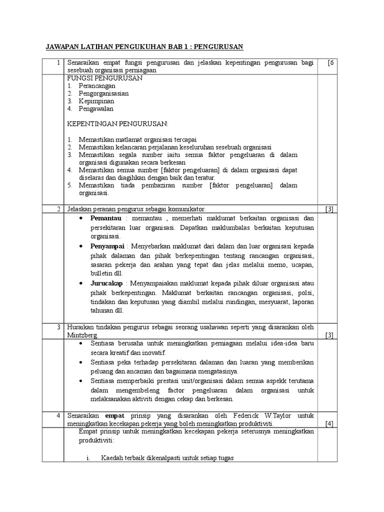 Jawapan Latihan Pengukuhan Bab 1 Penggal 2