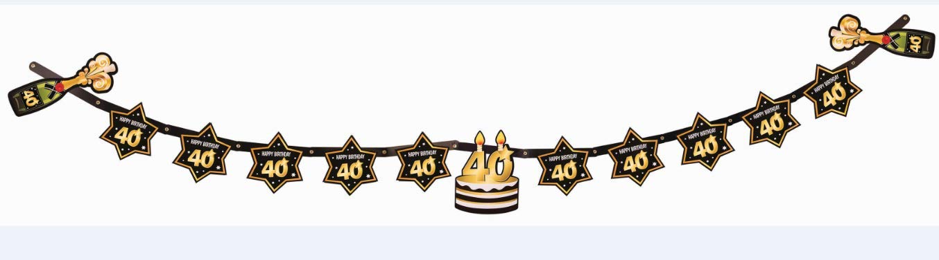 Celebration 40th Birthday Milestone Party Garland 2 1m 6 Feet 9 Inches Gold Black White Amazon In Health Personal Care