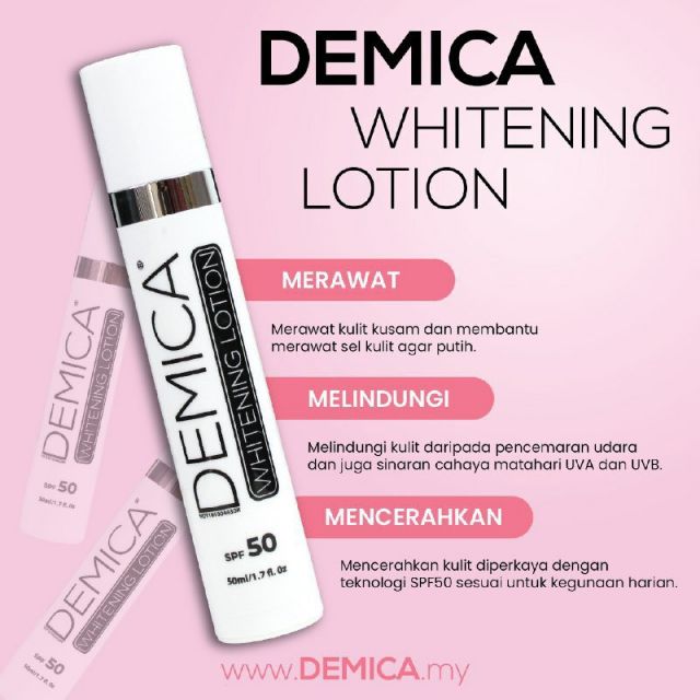Demica Whitening Lotion Losyen Pemutih Kulit Demica Demica Lotion With Spf50 50ml Lazada