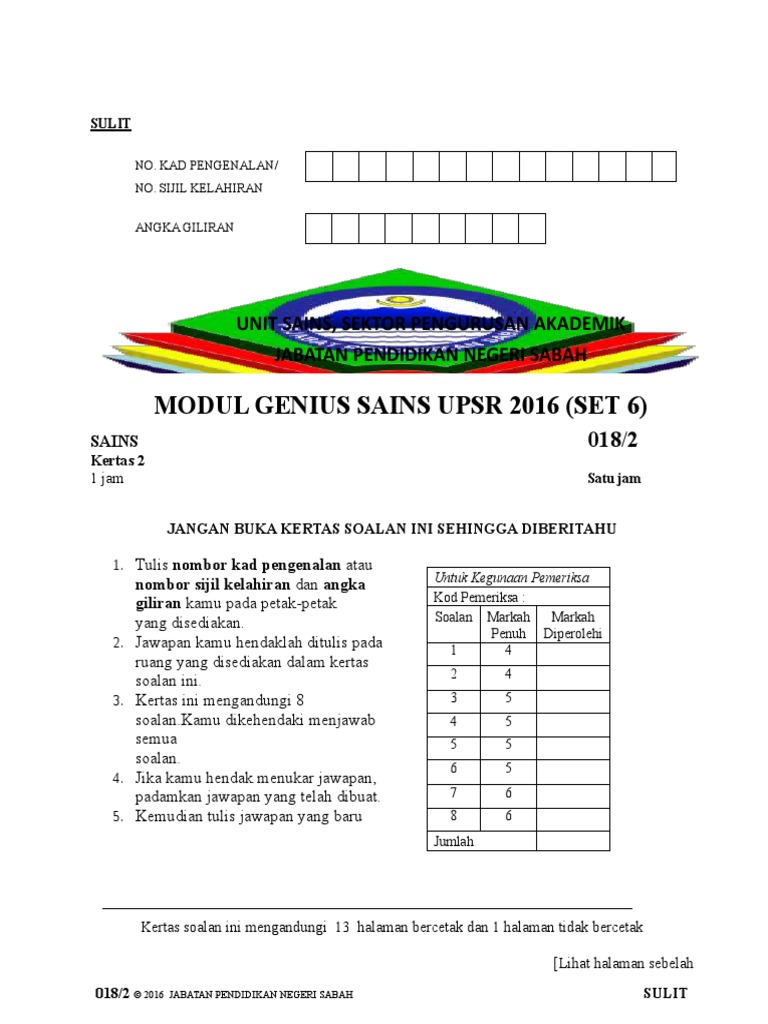 Modul Genius Sains Upsr 2016 K2