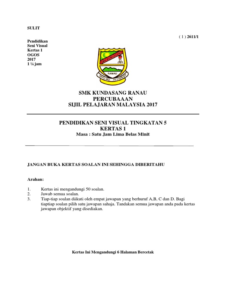 Kertas Soalan 2611 2 Sijil Pendidikan Seni Visual Facebook