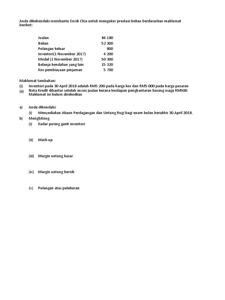 Modul 1 Prinsip Perakaunan Kertas 2 Kos Jualan 24 000 Hitung Peratus Untung Kasar Atas Jualan Pdf Document