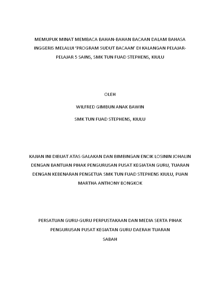 Kajian Tindakan Memupuk Minat Membaca Bahan Bahan Bacaan Dalam Bahasa Inggeris