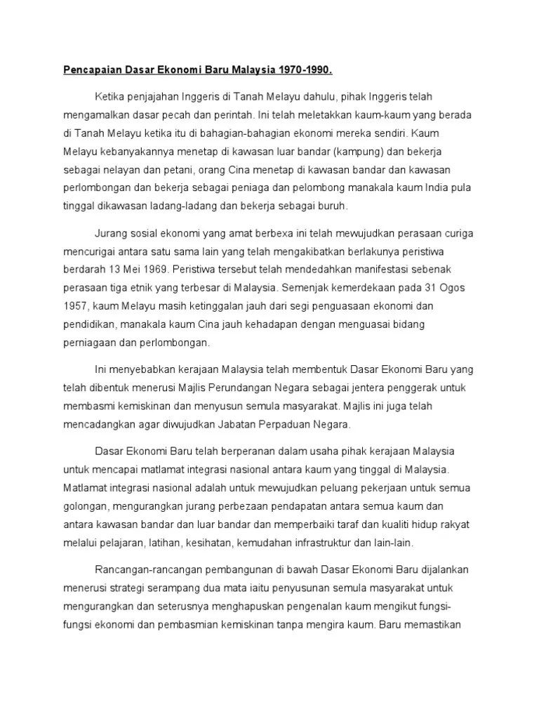 Negaraku Malaysia Kajian Dasar Ekonomi Baru