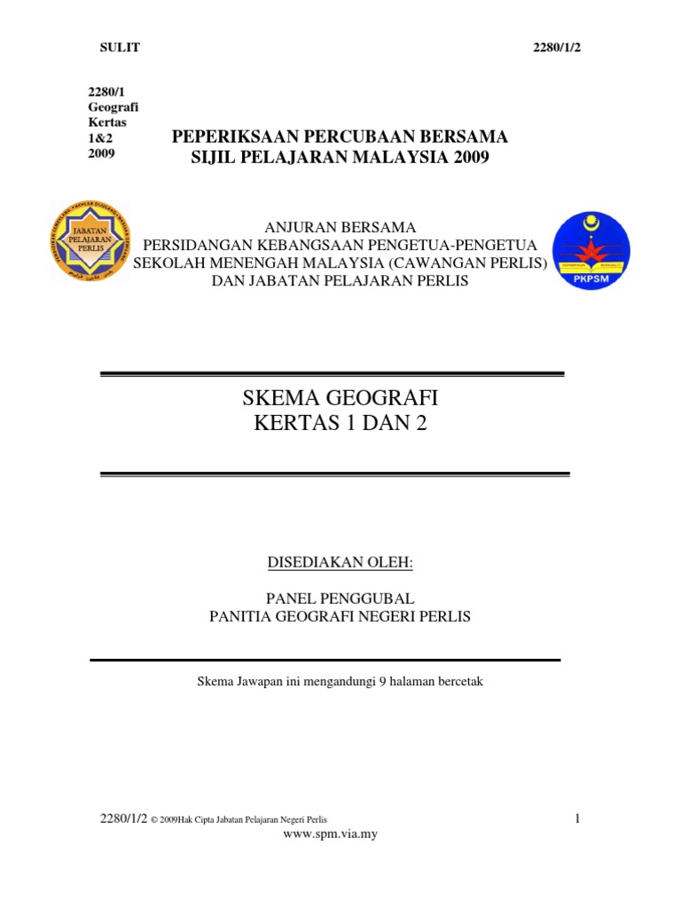 Skema Jawapan Geografi Percubaan Negeri Perlis